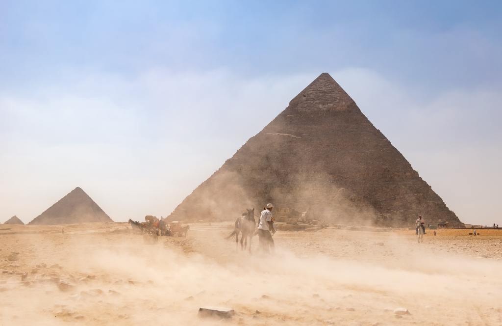 Then we drive to nearby Giza to visit the Pyramids and the famous Sphinx. We also make a stop at a secret little temple nearby.